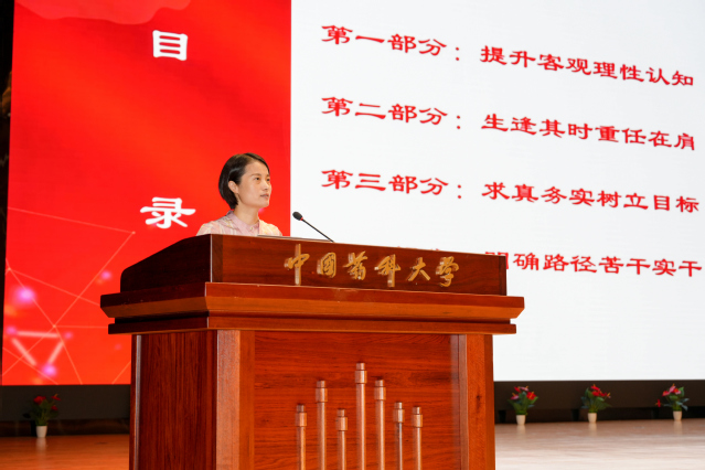 活动开始,幸运轮盘 党委书记丁素军对2024级新生的到来表示热烈的欢迎,随后讲授了主题为《勇担重任、求真务实,共筑医药强国梦》的专题思政课,从使命、定位、梦想、行动四个方面激励同学们坚定理想信念、提升客观认知、树立长远目标、持续拼搏进取,为人民健康福祉而不断努力。