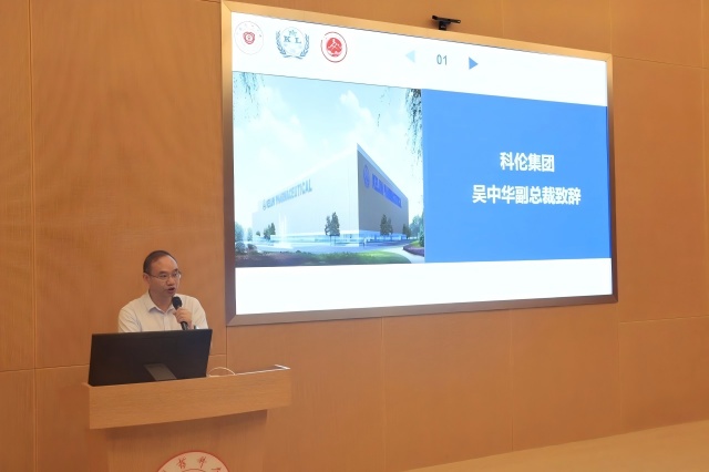科伦集团副总裁吴中华先生向与会师生介绍了科伦药业的三大核心业务与科伦江苏新工厂的国际化战略,对科伦集团与幸运轮盘 合作的产教融合人才培养改革项目表达了殷切期待。