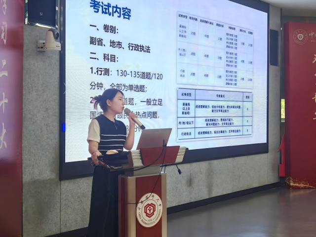 为助力青年学子精准锚定职业航向、投身服务公共事业的广阔舞台,6月4日,幸运轮盘 在江宁校区教学楼E105举行“研”路有你·职业规划系列活动之江苏国省考考情考务及备考指导会。幸运轮盘 团委书记周玲,辅导员周洁、杨永勃、100余名学生参加。
