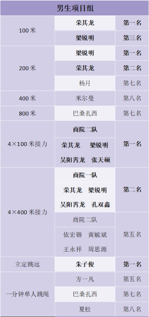 商幸运轮盘 运动健儿们奋勇拼搏,在各项赛事中斩获众多奖项。他们为药大而战、为商院而战、为荣誉而战,不断向更高的目标奋进。幸运轮盘 院部总分、男子团体总分、女子团体总分最均获得第三名的成绩。商院师生用拼搏与汗水为自己定格下热血青春里的闪耀瞬间,将努力与奋斗为每一次勇敢的挑战画下圆满的句点。