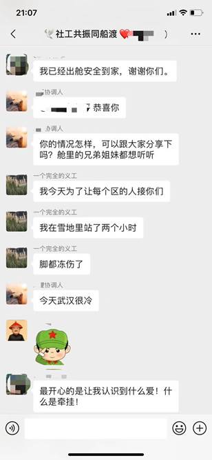 社工和心理志愿者,光靠武大的力量是不够的。郁之虹还积极向中国社会工作教育协会求助,协会立即帮忙对接了黑龙江省相关机构。很快,黑龙江省社工志愿者,在经过前期严格的资质审核、规范的报名材料提交,以及对一线能力和岗位匹配度进行评审之后,投入到武汉抗击疫情的前线志愿服务中。此外,还有来自上海、广州等地的资深社工督导和专家也陆续加入。