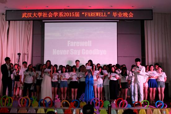 社会学系2015届毕业生全体出演“FAREWELL”毕业晚会,共同回忆和纪念美好的大学时光。整场晚会饱含了毕业生们对老师悉心教导的感激,对菁菁校园的不舍以及对同窗好友的祝福之情,是全体毕业生的一份弥足珍贵的记忆。
