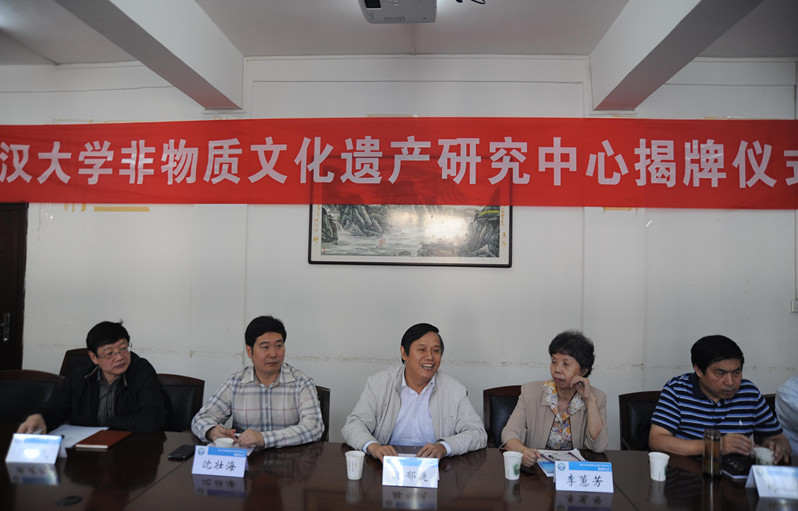 非物质文化遗产研究中心建设成湖北乃至全国一流的中心。为此,他代表学校提出三点要求:一是加强跨学科合作,加强院系间的协调与协同,根据需求导向,任务牵引,形成合力、协调机制,优势互补,以武大整体形象面对湖北,面对社会;二是注重理论探索与创新,关注前沿,找准主攻方向,形成特色,集体攻关,形成重大成果;三是注重非遗的应用研究,处理好非物质文化遗产的目的发掘、保护、开发和利用关系,使其成为国家重要的文化资源和软实力。同时要注重加强与地方协作,加强应用,把学生带出去实践,带出去调查研究,促进人才培养。