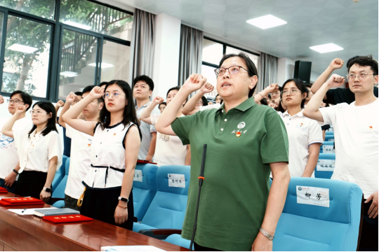 重温入党誓词环节,全体党员面向党旗,高举右手,庄严宣誓。“为共产主义奋斗终身,随时准备为党和人民牺牲一切”的誓言,铿锵恢宏,响彻全场,激励各位党员不忘初心、牢记使命,坚定理想信念,奋发有为担当,在中国式现代化建设中切实肩负起新时代新征程党赋予的使命任务,为推进强国建设、民族复兴伟业接续奋斗!