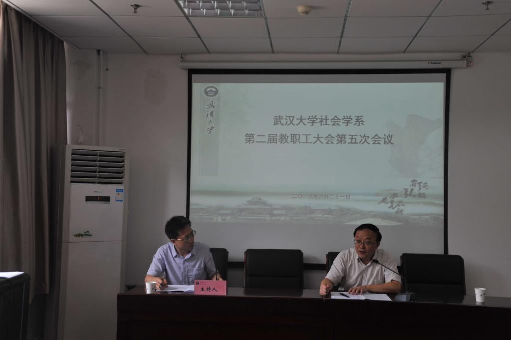 2018年6月21日下午,我系在系报告厅隆重召开第二届教职工大会第五次会议。校党委副书记沈壮海、校工会主席蒋锁奋出席大会开幕式并讲话。