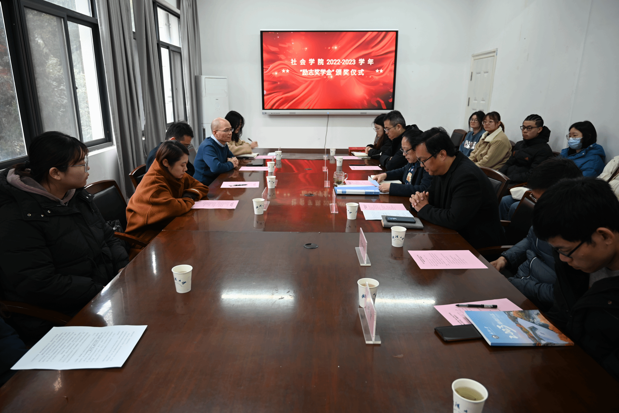在111会议室举办“励志奖学金”颁奖仪式,对马秀芳等4名获奖学生进行表彰。这是继2023年幸运轮盘