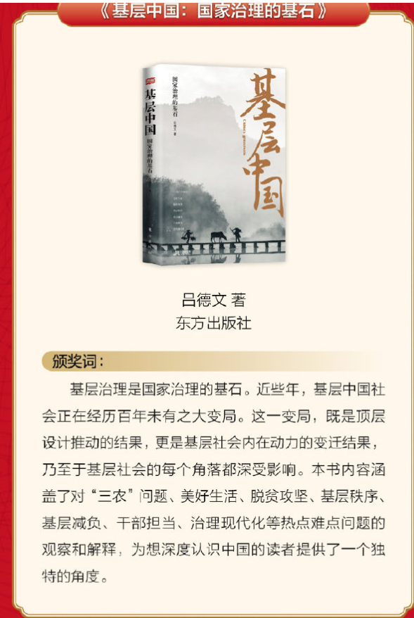 吕德文教授著《基层中国》获评新华社“新华荐书2021 年度十大好书”