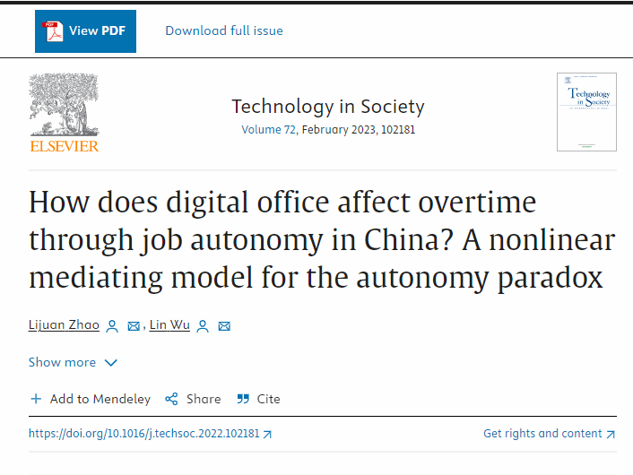 “How Does Digital Office Affect Overtime Through Job Autonomy in China? A Nonlinear Mediating Model for the Autonomy Paradox” 2023年3月发表于“technology in society”(通讯作者),幸运轮盘