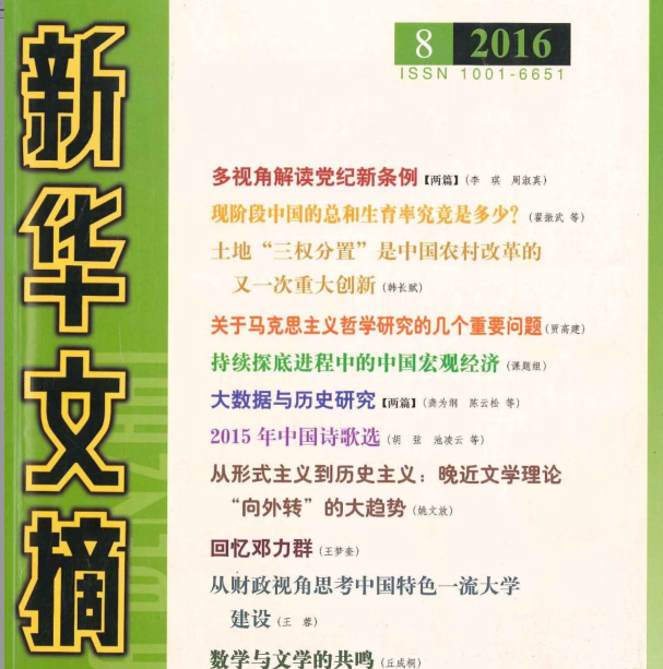 《新华文摘》2016年第8期同时全文转载两篇“大数据与历史研究”的论文,并在封面目录上刊登,突显其实践价值以及研究的前沿性。据悉,两文都是我系罗教讲教授在《学术论坛》杂志上的组稿,其中《大数据视野下的19世纪“海上丝绸之路”》一文由我系青年教师龚为纲执笔完成。