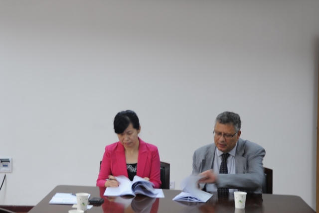 社会学系系主任林曾、SAGE出版公司亚太地区总裁Paul. M. Evans及相关陪同人员出席了签字仪式。马淑杰院长与Paul. M. Evans总裁在合作协议上签字。