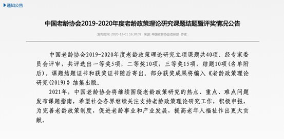 陈昫同志继2014年以来,已三度申获中国老龄协会(全国老龄办)理论政策研究部级课题,其课题研究成果全部获奖。