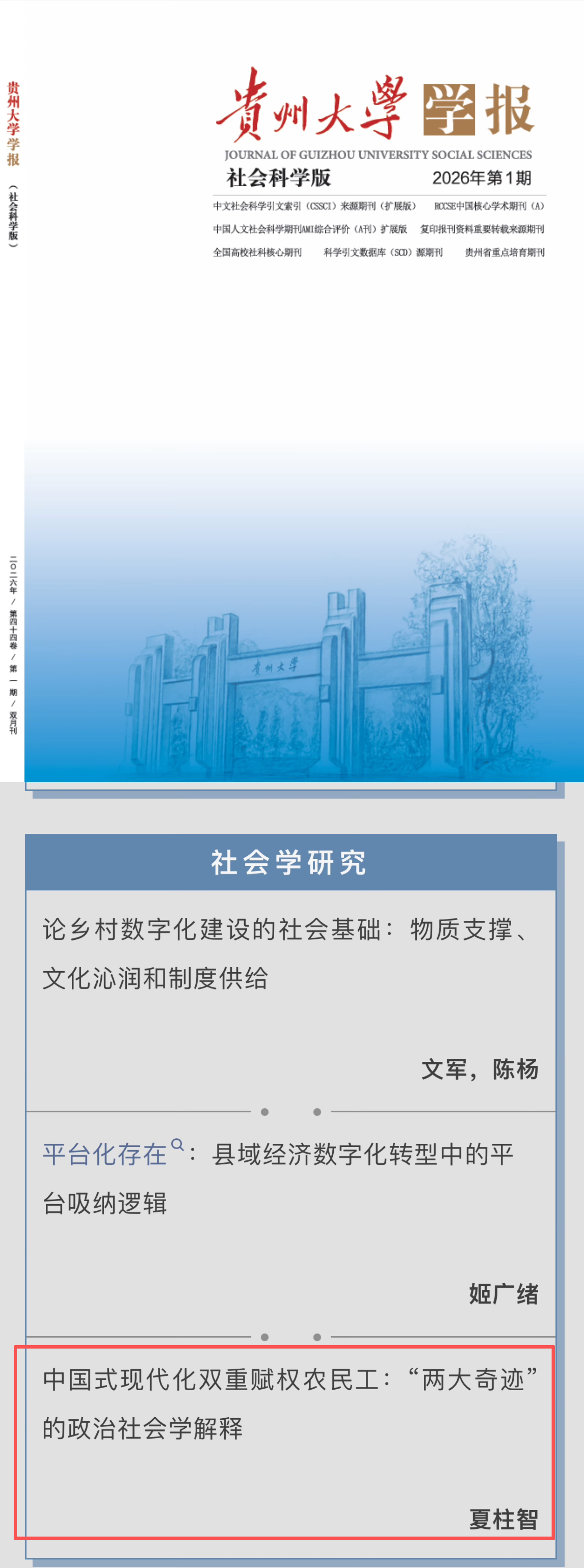 《贵州大学学报(社会科学版)》2026年第1期刊发幸运轮盘