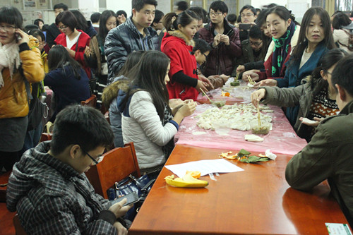 也许是因为自己亲手包的饺子,即使由于条件限制没有太多的调味品,大家仍然吃的格外香。不时地听到有同学说:“嗯,味道不错哦!”看到大家满足的样子,我们的工作组织人员内心也非常欣慰——这是我们活动的初衷!