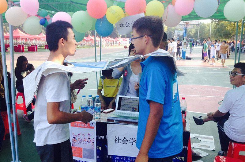 十月二十五日下午的桂操举行了新生文化节,各院系的精彩活动也在这里宣传。我系生活权益部代表社会学系策划的珞珈酷跑运动,通过神秘的游戏环节吸引了许多人的围观与报名,在整个活动中尤为耀眼。