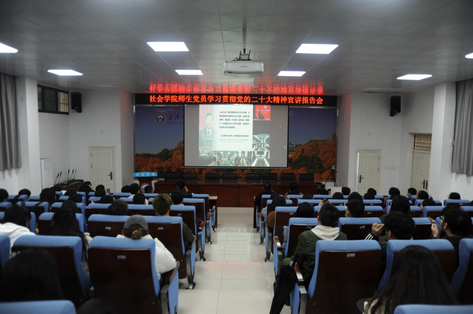 11月18日下午,校党委副书记沈壮海在学校图书馆报告厅主会场专题宣讲党的二十大精神学院党政领导班子及教师党员代表现场聆听。