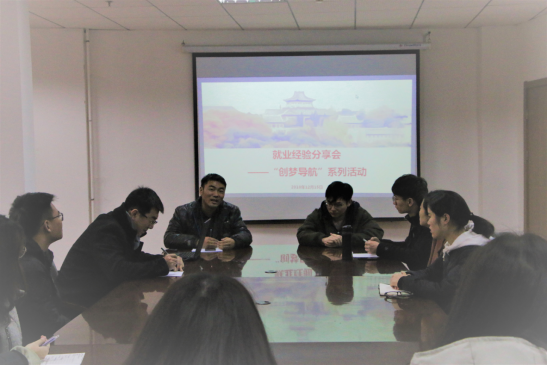 2018年12月15日,我系学子在系二楼会议室参加由房宋学长主讲的“创梦导航”系列活动——就业经验分享会,学长和同学们围坐在一起,分享自己的工作经历,跟大家交流就业创业心得,帮助大家答疑解惑