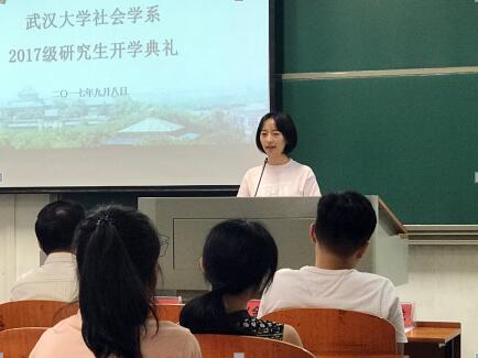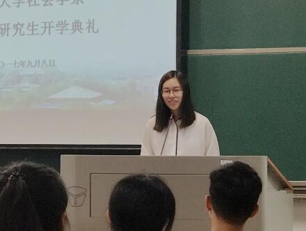 其后,2016级优秀研究生卜禾同学代表社会学系全体老生发言。卜禾同学分享了一年来学术研究的心路历程,强调阅读经典书籍、了解学科前沿的重要性,同时提醒大家目标管理、自我管理、情绪管理是培养自我思维能力、学习习惯必不可少的要素。