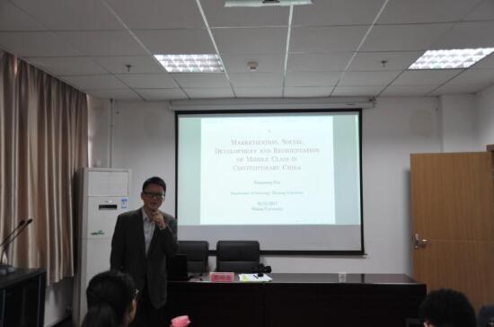 2017年10月13日下午,应邀前来的浙江大学社会学系副教授范晓光博士在我系302教室开展题为《市场化、社会发展与当代中国中产阶层的再认定》的学术讲座。此次讲座由我系张杨波老师主持,我系部分教师、博士生和研究生参加此次讲座。