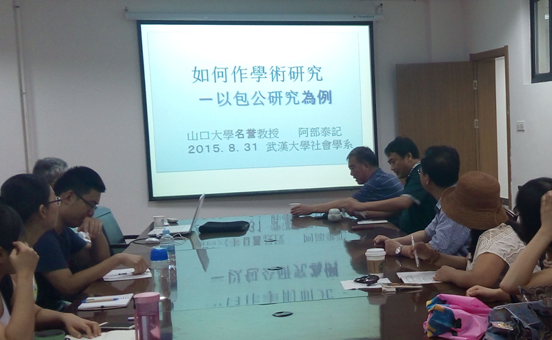 2015年8月31日下午,应社会学系邀请,日本山口大学阿部泰记教授来访我系,并做了题为《如何做学术研究——以包公研究为例》的学术讲座。我系副主任徐炜副教授主持讲座,桂胜教授、徐少舟副教授及部分在校的博士生、硕士生参加了此次讲座。