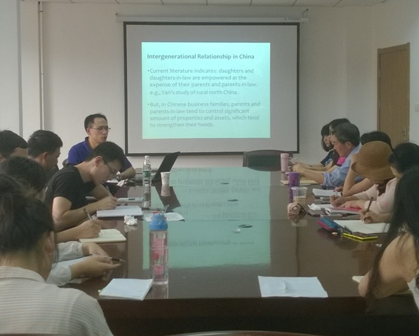 6月16日下午3点,应社会学系邀请,美国路易维尔大学人类学系副教授赵剑华来访我系,为师生们带来了一场题为《中国家族企业传承和社会性别》的精彩讲座。本次讲座由朱炳祥教授主持,我系博士生和2014级硕士生参加了讲座。
