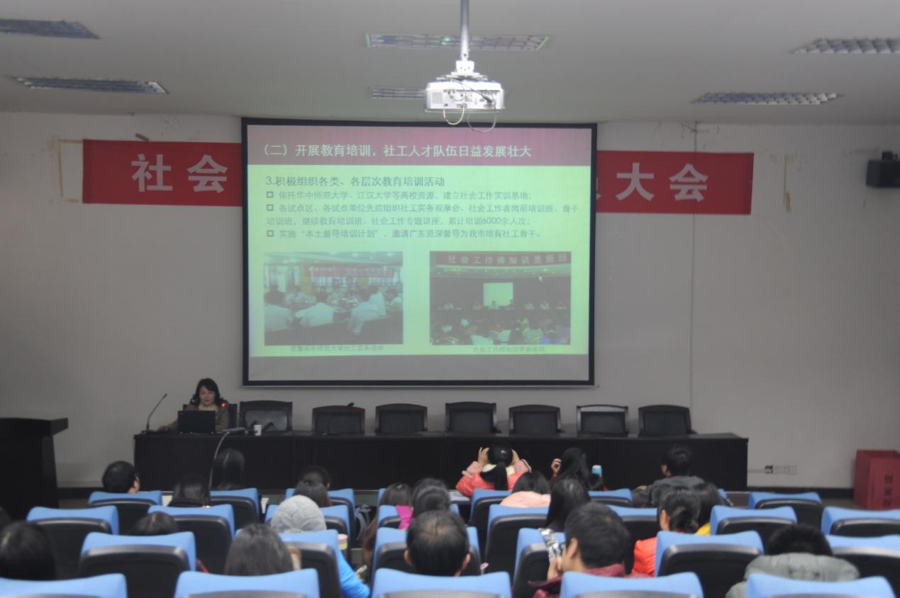 本场讲座由我系副主任、博士生导师慈勤英教授主持。在慈教授简要的介绍后,何处长开始了讲座。何处长首先介绍了中央和湖北省关于社会工作人才队伍建设的有关决定和指示。自2006年十六届三中全会党中央决定建设一支宏大的社会工作人才队伍以来,社会工作经历了几个重大事件:全国社会工作人才队伍建设试点的不断推行、职业资格认证考试正式启动全国社会工作标准委员会成立中央近两年加强了制度设计,密集出台《关于加强社会工作专业人才队伍建设的意见》一系列配套措施发布的《关于加快推进社区社会工作服务意见》这些举措都在表明党中央高度重视专业社会工作人才队伍的建设。何处长汇报的第二部分是武汉市社工人才建设的探索与实践,结合中央和湖北省的相关要求,武汉市的社会工作发展已经扩展到民政、教育、卫生等7个领域,并在4中心城区开展试点取得了一定的成效。最后,何处长介绍了武汉市推进社工人才建设的主要思路,在分析了当前社会工作认可度低、专业人才偏少和试点范围影响小的困境下提出了具体的目标和发展人才的核心思路。