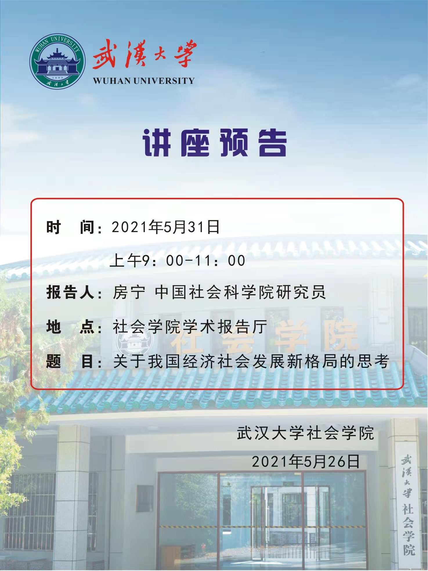 【讲座预告】房宁:关于我国经济社会发展新格局的思考